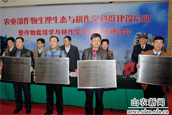 3月1日至2日,农业部作物生理生态与耕作学科群建设启动暨作物栽培学与耕作学学科发展研讨会在泰安召开。会议由于振文院士主持。农业部科技教育司技术引进与条件建设处处长杨礼胜、b体育sports官方网站党委书记邢善萍、副校长董树亭、农业厅科技处处长姜卫良参加会议并为实验室和实验站授牌。