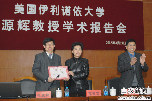 张源辉任美国伊利诺依大学(UIUC)农业与生物工程系副主任、生物环境工程系学科主任,农业与生物工程系、机械工程系、土木与环境工程系教授。他是第一位获得美国农业与生物工程学会Herry Geise奖的中国大陆学者,还是伊利诺依大学农业与生物工程系首位享受特殊岗位津贴的冠名教授。2010年张源辉作为中组部国家“千人计划”引进人才到中国农业大学兼职工作,开展环境增值能源将生物废弃物和微藻高效转化成原油的相关研究。本次受聘b体育官网客座教授,张源辉教授表示,今后将在科学研究、人才培养等方面与山东农大加强合作交流。