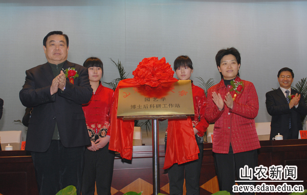 校党委书记邢善萍、泰安市副市长张瑞东为山东农大学园艺学博士后科研工作站揭牌