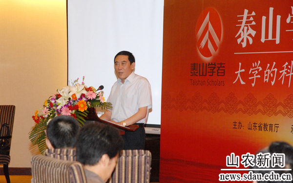 7月24日至26日,来自省内17所高校的42位泰山学者聚集泰山脚下,参加“第一届泰山学者主题沙龙”,研讨合作之路,介绍学术前沿,分享科研之道,交流人生思考。山东省教育厅厅长齐涛,教育厅副厅长张兴民,科技厅副厅长郭九成,省委组织部人才工作处处长刘贵堂,山东农大党委书记邢善萍,山东工艺美院院长、泰山学者特聘教授潘鲁生、山东农大副校长、泰山学者攀登计划人选张宪省等出席沙龙开幕式启动仪式。