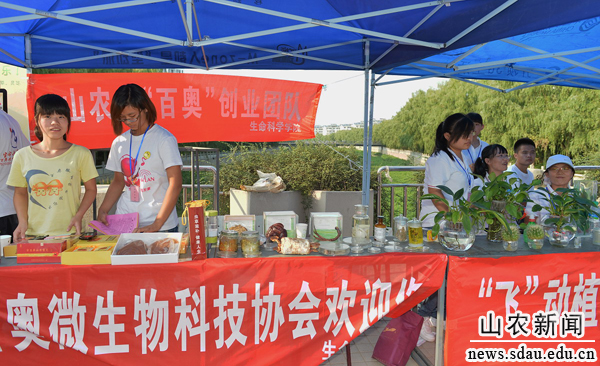 学生社团用自己的成果欢迎新同学的到来