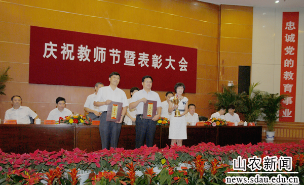 9月10日,学校召开庆祝大会,表彰奖励教育教学工作中涌现出来的先进集体和先进个人。校领导邢善萍、温孚江、张敬和、孙永华、董树亭、张宪省、董新胜、高东升出席会议,党委书记邢善萍在讲话中讴歌教育事业的伟大、教师职业的神圣,并对广大教师提出殷切希望。