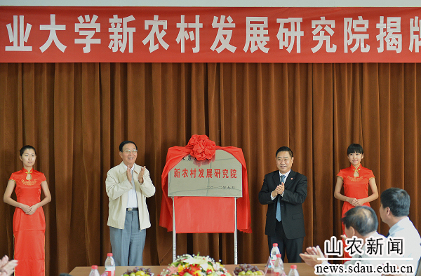 b体育sports官方网站党委书记邢善萍、山东省科技厅副厅长郭九成先后致辞,李振声院士和温孚江校长为新农村发展研究院揭牌。副校长董树亭主持揭牌仪式。