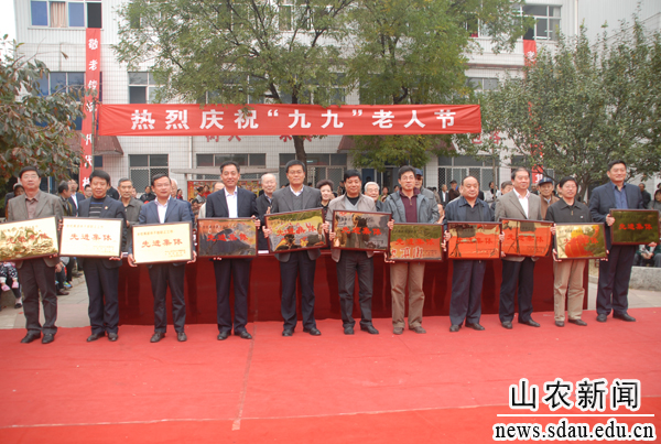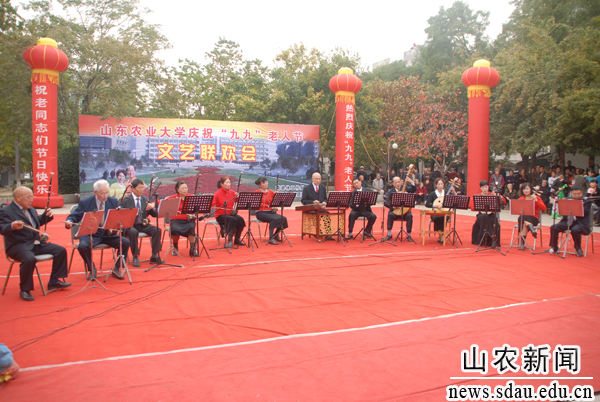 10月23日下午,b体育sports官方网站庆祝“九九”老人节文艺联欢会在夕阳红广场举行,校领导邢善萍、张敬和、孙永华、董树亭、董新胜、车先礼、朱莉、嵇景涛,各单位、各部门负责人和离退休教职员工欢聚一堂,共庆老人节。联欢会前,举行了颁奖仪式,张敬和宣读表彰决定,邢善萍等为获得中国老教授协会“老教授科教工作优秀奖”的孙兰珍教授和学校离退休干部职工工作先进集体颁奖。