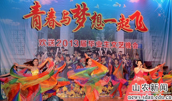 6月20日,由校团委、学工处主办的“青春与梦想一起飞”b体育sports官方网站欢送2013届毕业生文艺晚会在校本部西礼堂激情上演。学校领导邢善萍、温孚江、孙永华、董新胜、车先礼、朱莉、嵇景涛,以及各部门、各学院负责同志与2000多名师生共同观看了晚会。