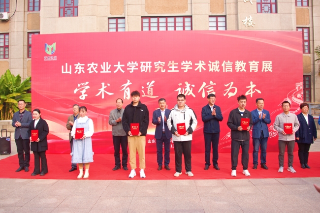 11月9日,学校在岱宗校区校史馆前举办研究生学术诚信教育展启动仪式。学校副校长林海出席活动并为“学术诚信优秀作品征集”活动中获奖研究生进行颁奖。