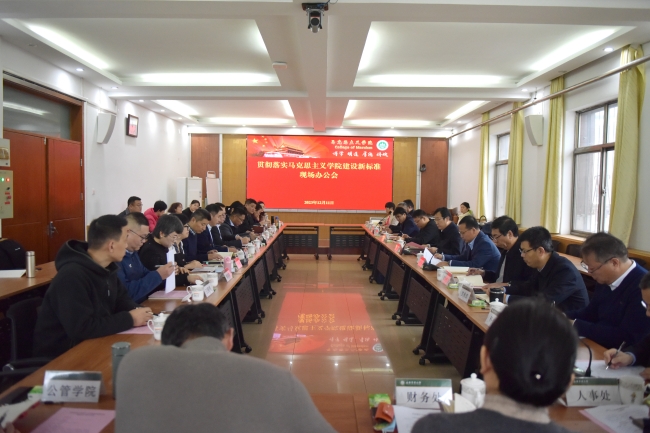12月11日,党委书记徐剑波带队到马克思主义学院现场办公,深入学习教育部印发的2023年版《普通高等学校马克思主义学院建设标准》文件精神,要求贯彻落实新标准各项要求,全面剖析学院建设中存在的短板弱项,研究解决制约学院发展的突出问题,明确目标任务、落实责任分工,进一步提升马克思主义学院建设水平。