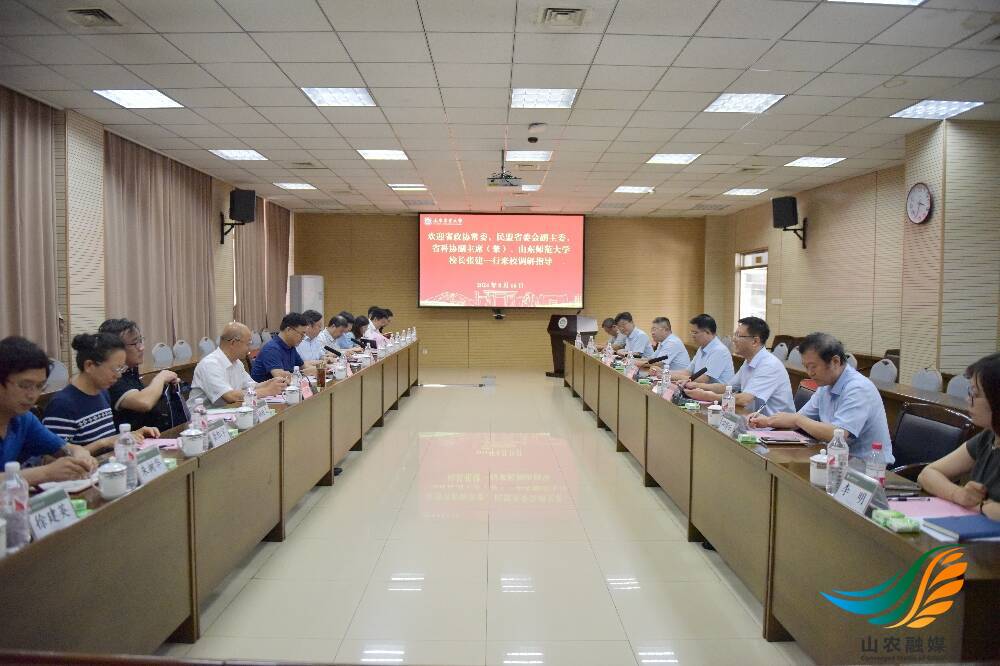 山农融媒8月17日讯 8月16日,山东省政协常委,民盟省委会副主委、省科协副主席(兼),山东师范大学校长张建率队,携民盟“811”项目调研专班深入b体育sports官方网站进行实地调研指导,了解b体育官网在“双一流”建设背景下的科技创新进展、教育教学改革及人才培养成效。党委副书记、校长冷畅俭接待调研专班一行,交流汇报“811”项目相关政策的具体落实情况及b体育官网作物学学科建设措施制定与实施情况。省政协常委,民盟省委会秘书长刘加钊,市政协副主席、民盟泰安市委会主委孙岱峰等参加调研。