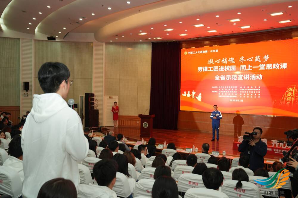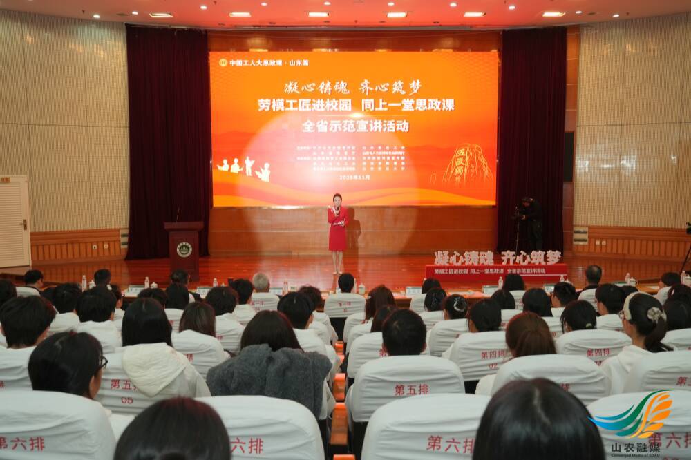 山农融媒11月12日讯 “用匠心拥抱新时代,以奋斗铸就新辉煌。同学们应当以他们为榜样,坚定理想信念,厚植家国情怀,勇担历史使命,用勤劳和智慧,把象牙塔里的奋斗岁月,串连成一页页值得的人生诗篇……”11月10日下午的岱宗校区学术报告厅座无虚席,“凝心铸魂 齐心筑梦——劳模工匠进校园 同上一堂思政课”全省示范宣讲活动走进b体育sports官方网站,四百余名师生齐聚一堂倾听奋斗故事,感悟劳模精神、劳动精神与工匠精神,汇聚奋进力量。