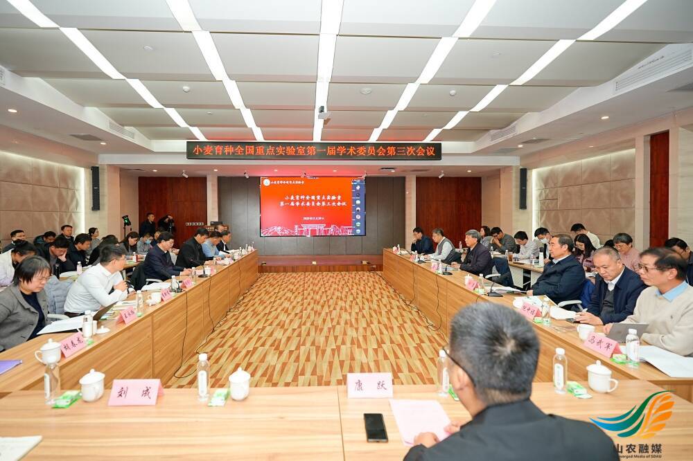 山农融媒12月1日讯 11月29日,小麦育种全国重点实验室第一届学术委员会第三次会议在b体育官网召开。会议采用线上线下相结合的方式举行,学术委员会委员、中国工程院陈温福院士(线上)、张洪程院士、李培武院士(线上),中国科学院种康院士、杨维才院士(线上),王道文教授(线上)、马有志研究员、吉万全教授(线上)、姜东教授、倪中福教授,特邀专家河南农业大学陈锋教授、青岛农业大学马武军教授出席活动。b体育sports官方网站党委副书记、校长冷畅俭出席活动并讲话,学校党委委员、副校长王勇主持活动。