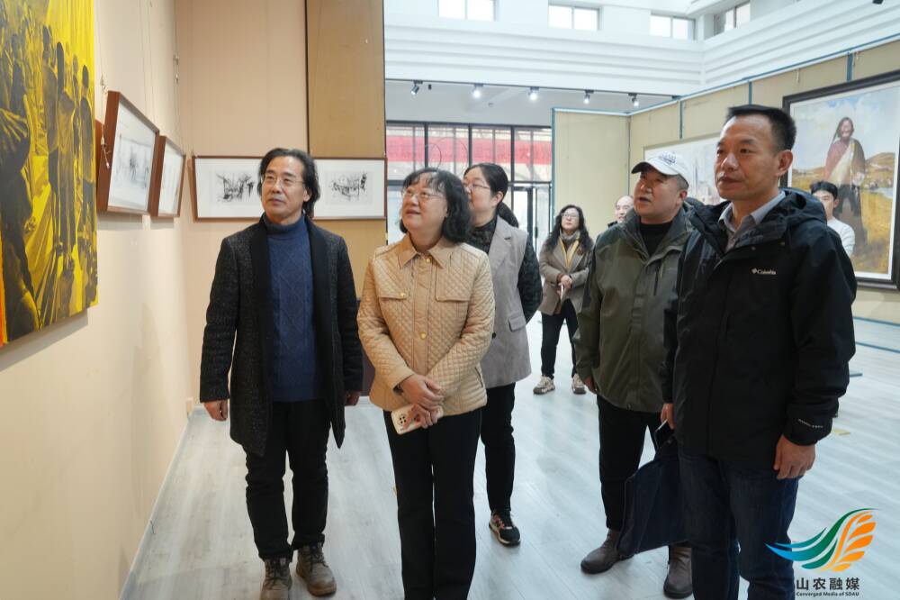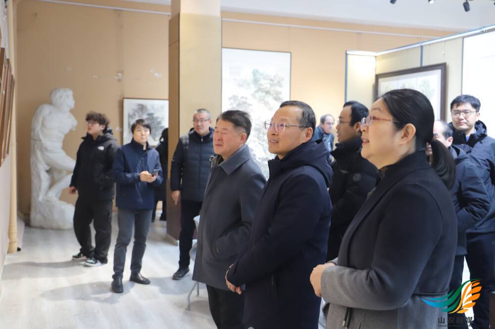 山农融媒12月16日讯 12月9日-16日,学校第七届金秋艺术节教师绘画作品展在艺术学院展厅举办。期间,学校党委副书记、校长冷畅俭,党委副书记张然,党委常委、副校长李广松现场观展。